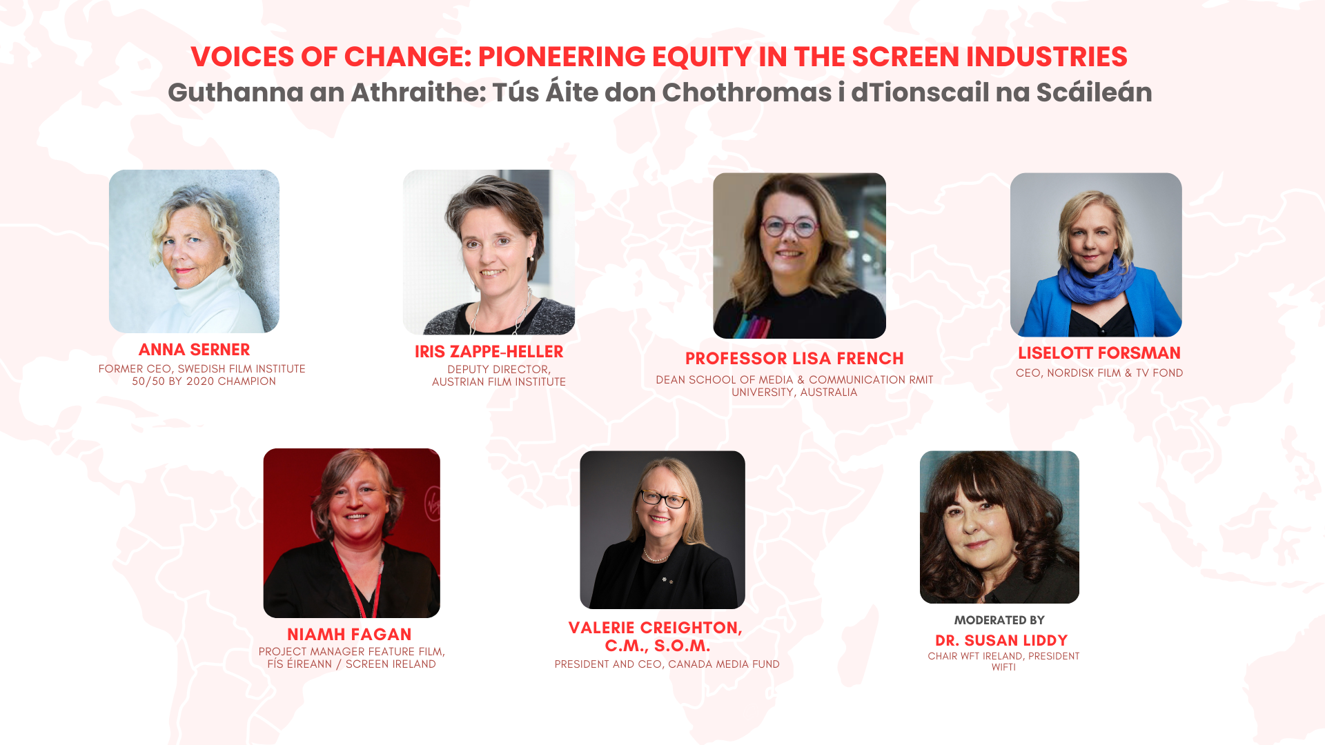 - Photo of the Voices of Change: Pioneering Equity in the Screen Industries panel that took place on Thursday, February 5th, 2026. From left to right: Dr Susan Liddy, President of WIFTI and Chair of WFT Ireland (Panel Moderator); Iris Zappe-Heller, Deputy Director, Austrian Film Institute; Lisa French, Professor of Screen & Dean School of Media & Communication, RMIT; Liselott Forsman, CEO, Nordisk Film & TV Fond and Producer; Valerie Creighton, C.M., S.O.M., President & CEO, Canada Media Fund; Niamh Fagan, Project Manager Feature Film, Fís Éireann / Screen Ireland. Panellist not pictured but joined via Zoom: Anna Serner, CEO, Center for Investigative Journalism and Former CEO, Swedish Film Institute. (Photo by Brian Arthur)